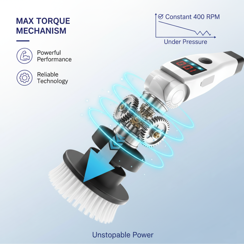 المحرك ذو علبة التروس المعدنية يحافظ على سرعة 400 دورة/دقيقة حتى عند تطبيق الضغط الكامل على البقع الصعبة، بدون تباطؤ أو توقف.